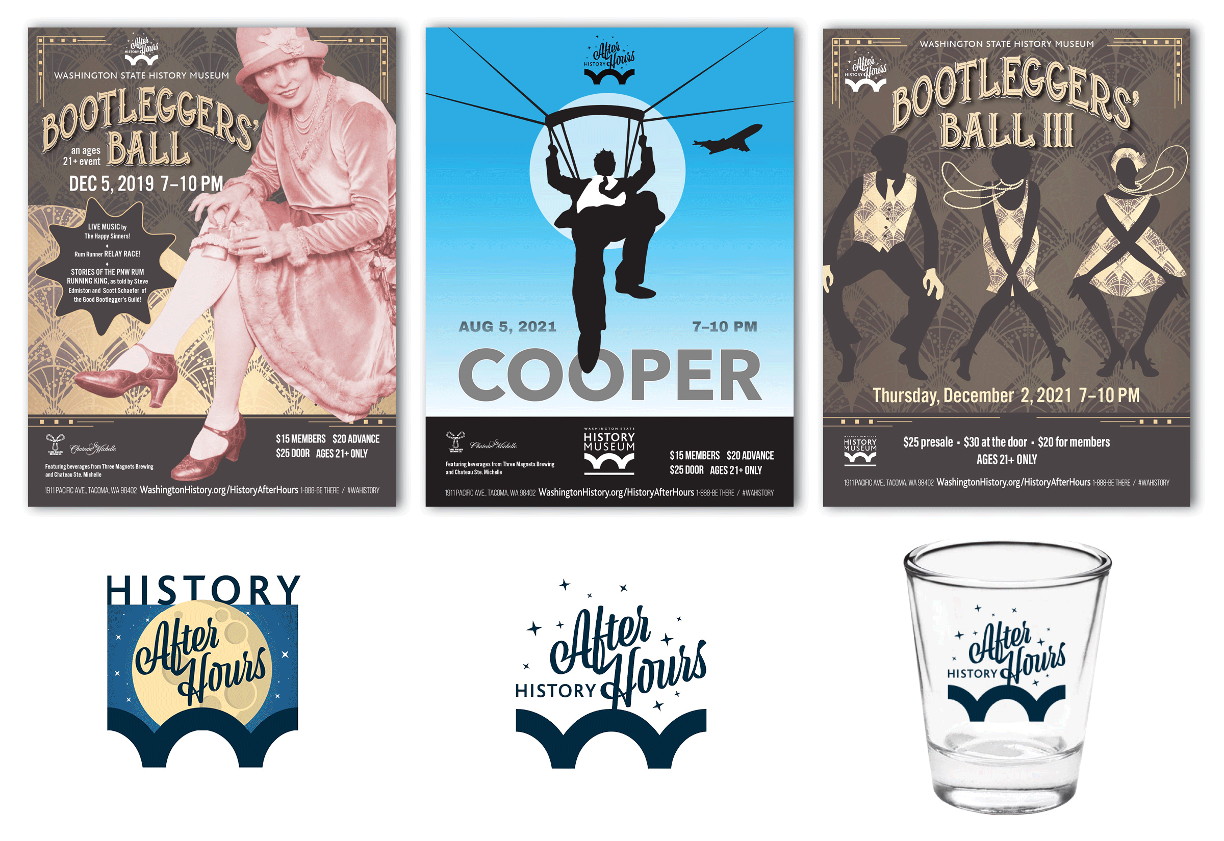 Designed logo and established branding guidelines for museum’s adult after hours events program. Created unique designs for each event which were carried through all marketing materials, including posters, digital and print ads, social media postings and promotional materials. Features original illustrated elements and typography.