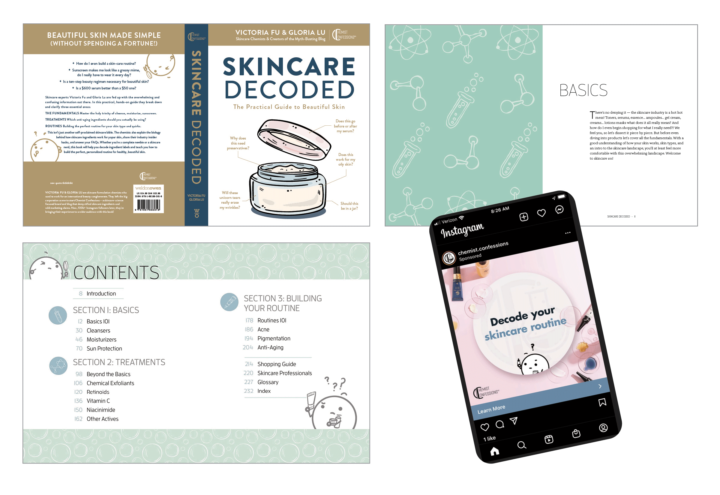 Designed book with social media infuencers’ existing branding and marketing needs in mind. Developed elements and color palette that could be used throughout all marketing needs, including email blasts, book signing events, and social media postings. Features original illustrated elements.