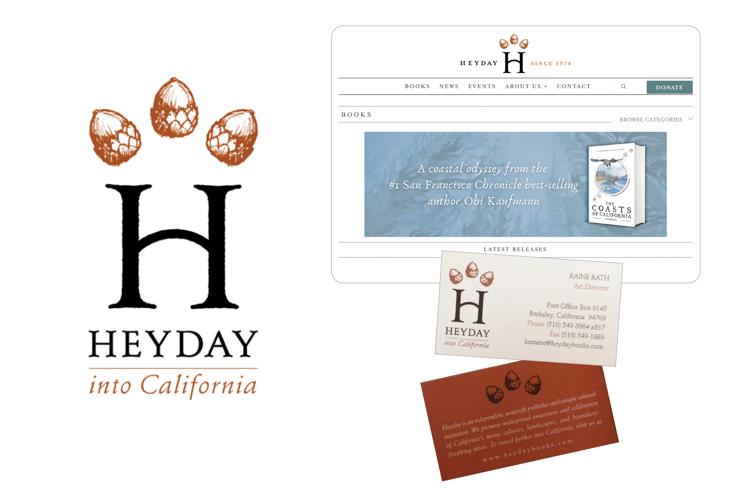 Designed new logo and branding guidelines for Heyday Books, iconic nonprofit book publisher. Features hand illustrated elements and typography.